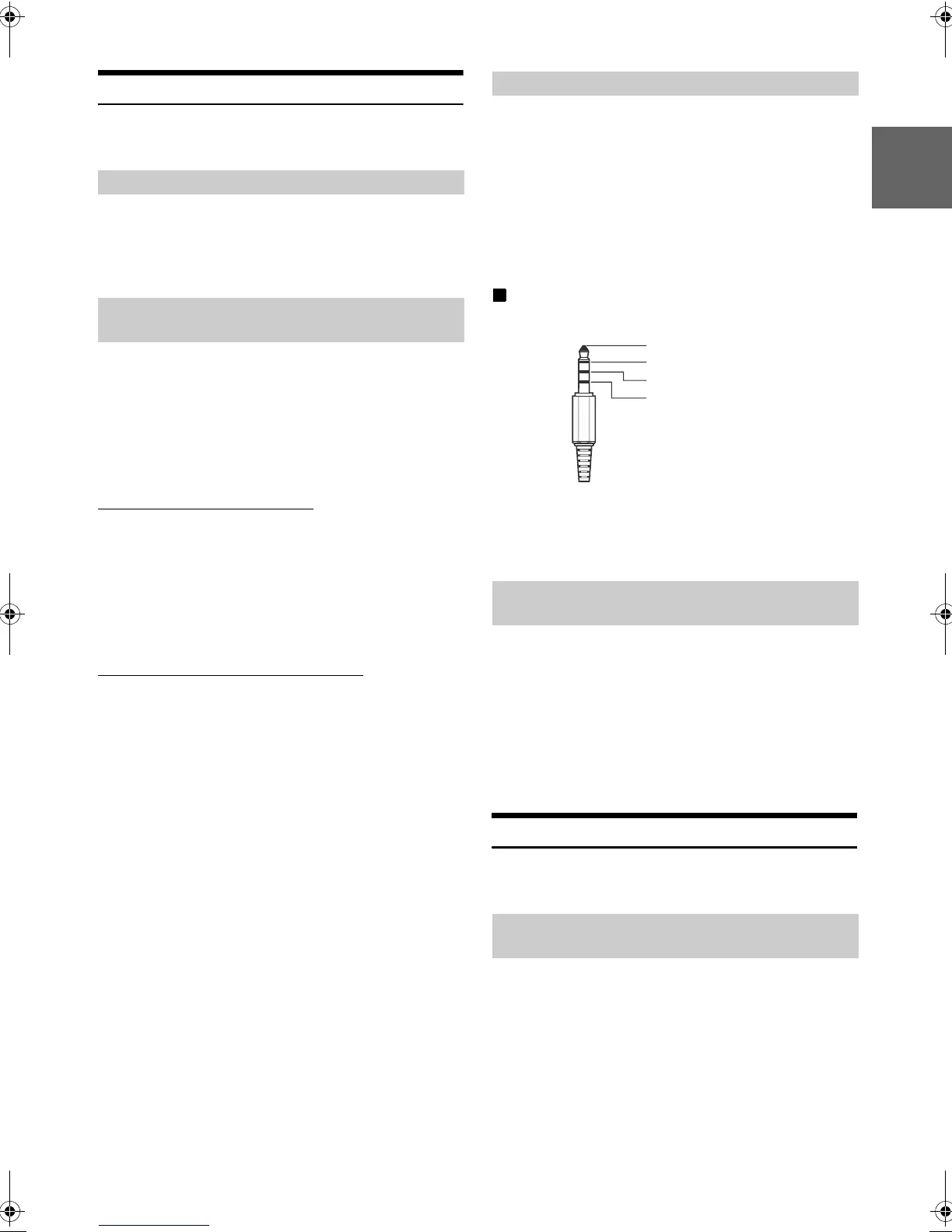 The unit accepts the following 4-pole mini AV plug pin-out: