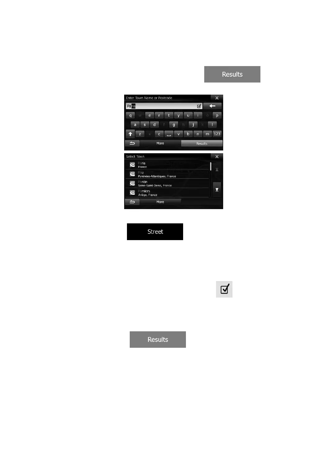 b. Start entering the street name on the keyboard.