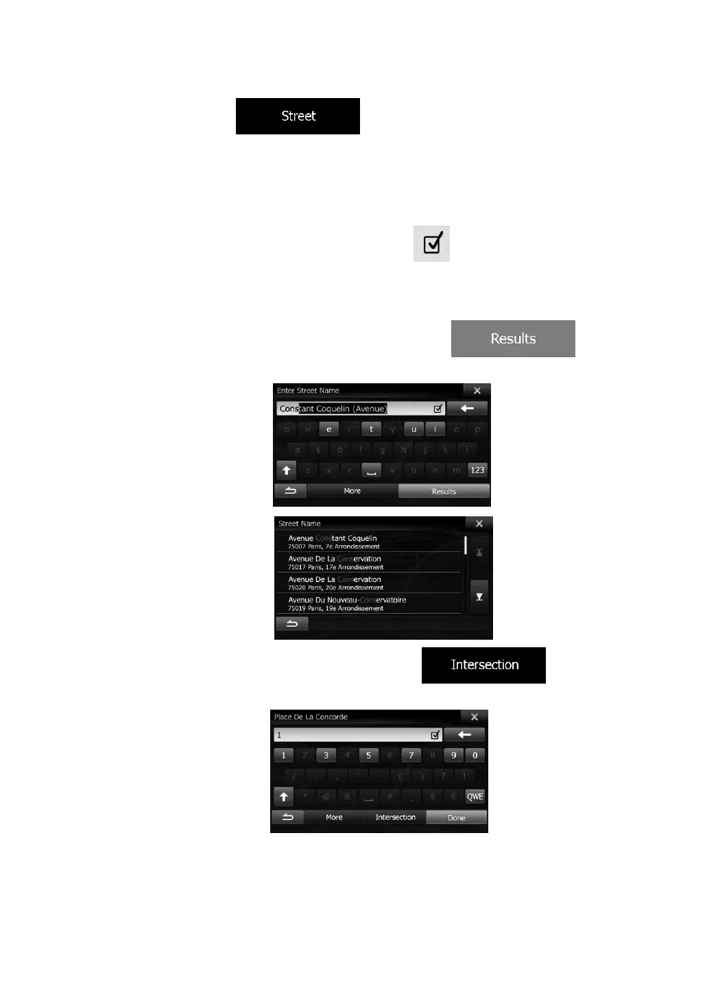 b. Start entering the street name on the keyboard.