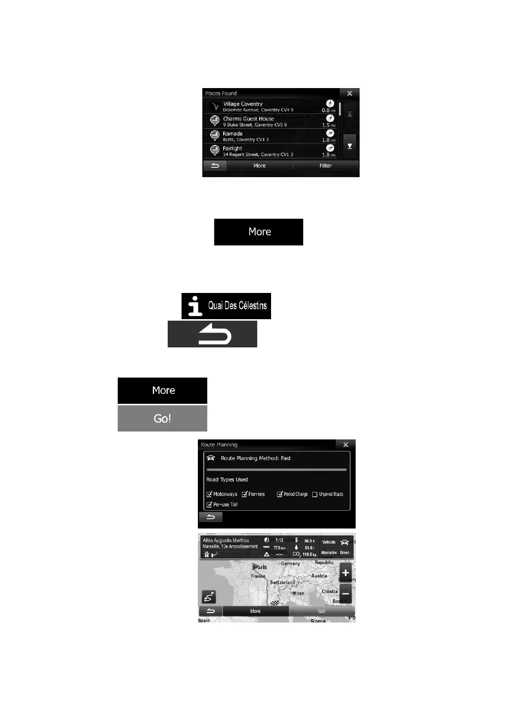 showing the entire route. The route is automatically calculated. Tap