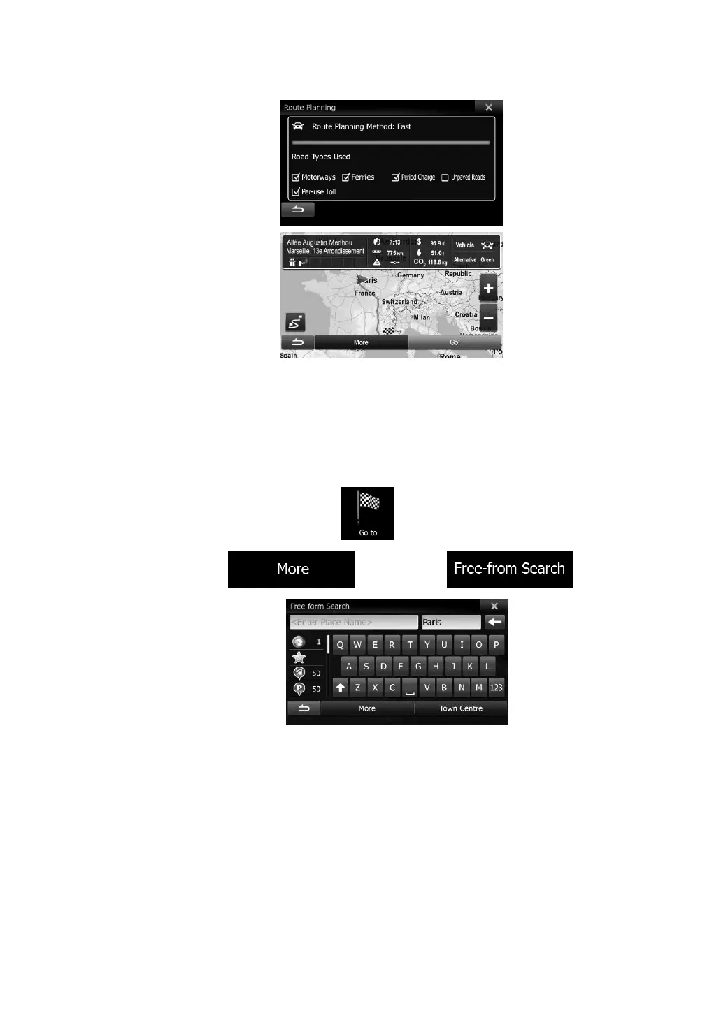 number), the name of a Place, a previous destination or an Address