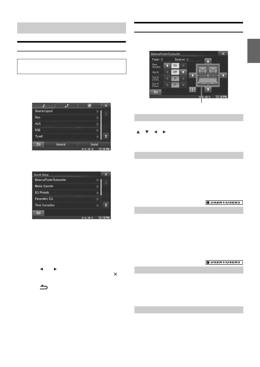 [Balance/Fader/Subwoofer] is selected on the Sound setup menu in