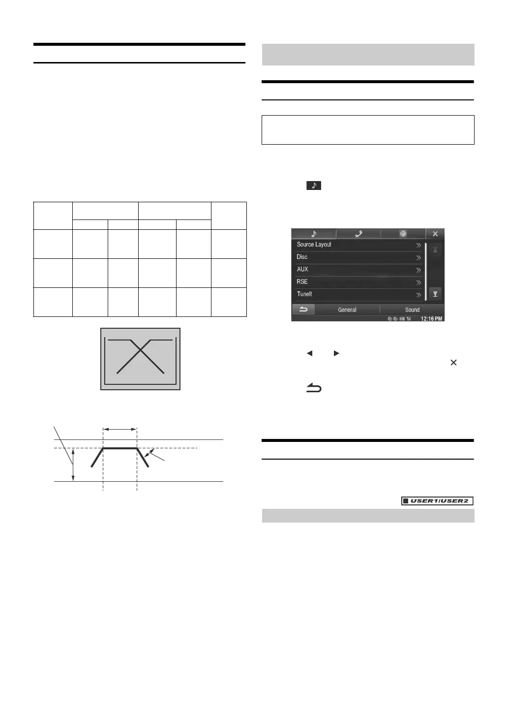 Setting items: Source Layout / Disc / AUX / RSE / TuneIt
