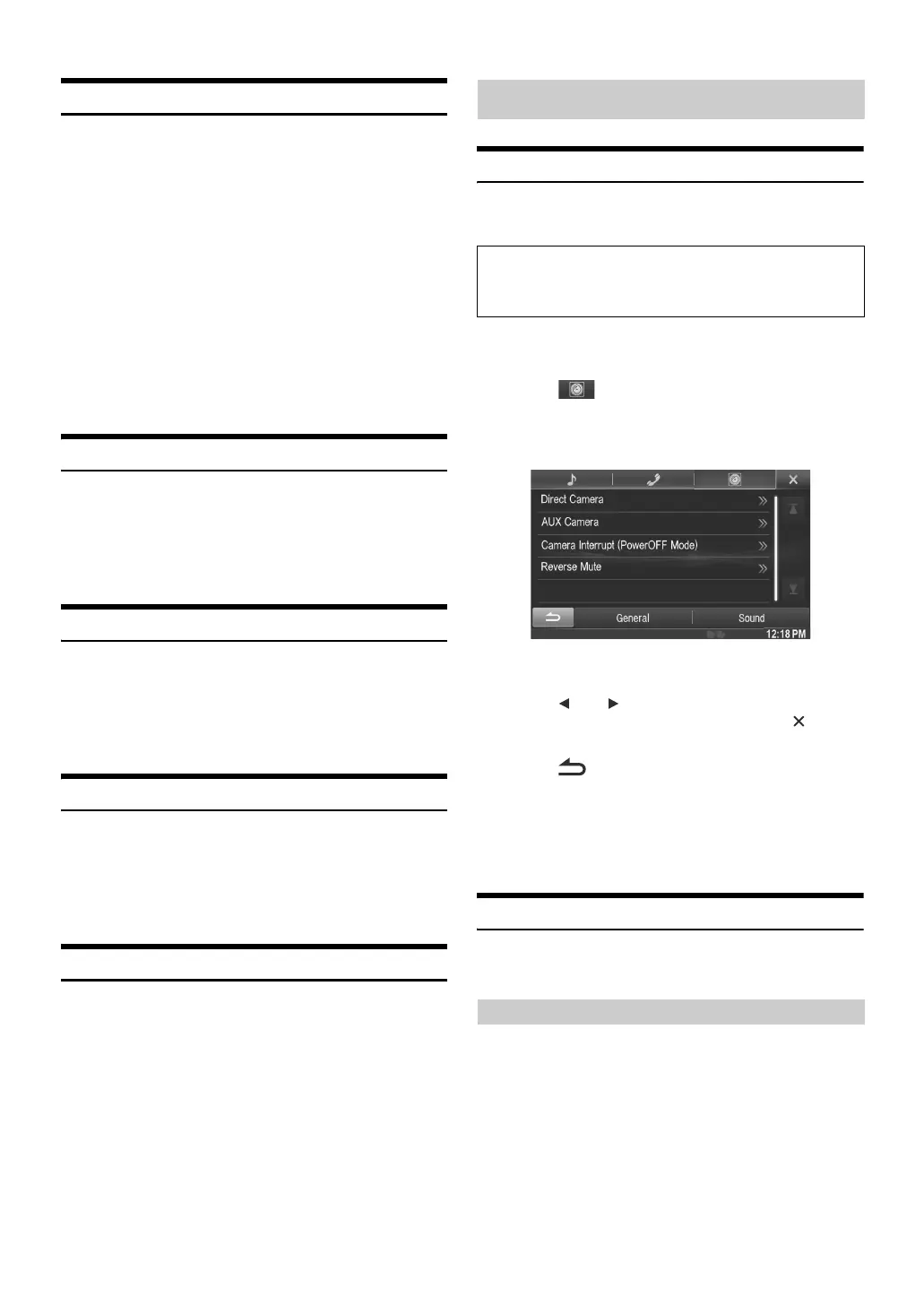 Setting items: Direct Camera / AUX Camera / Camera Interrupt