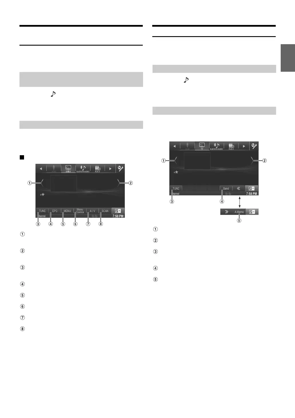 When you touch the screen in the DVB-T mode, the operation screen is