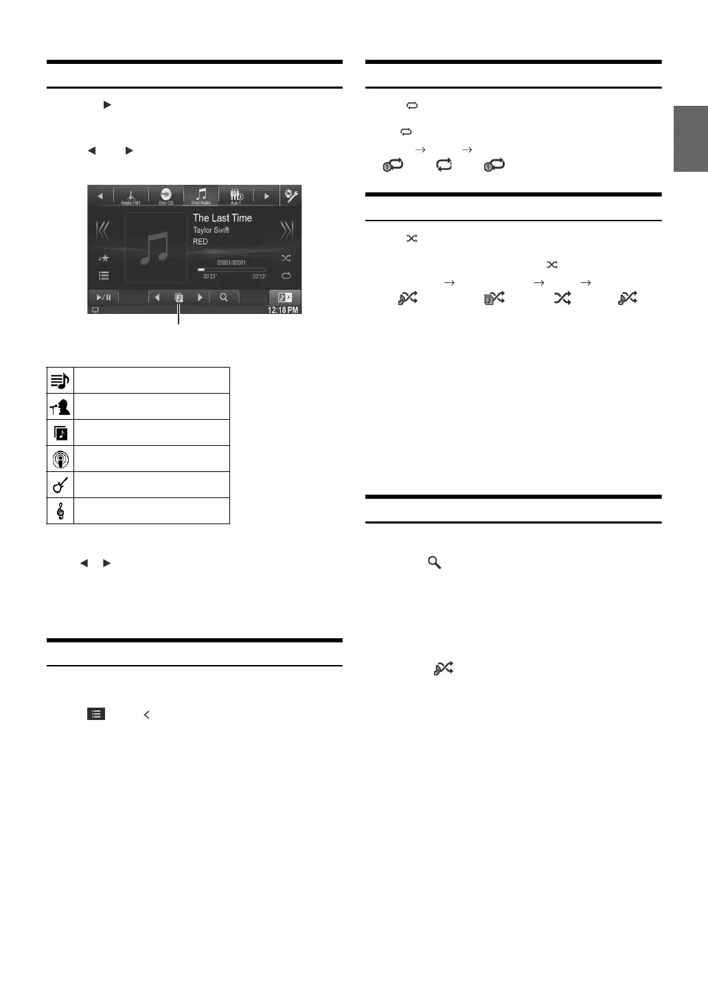 • For details on the search mode, refer to “Searching for a Music File”