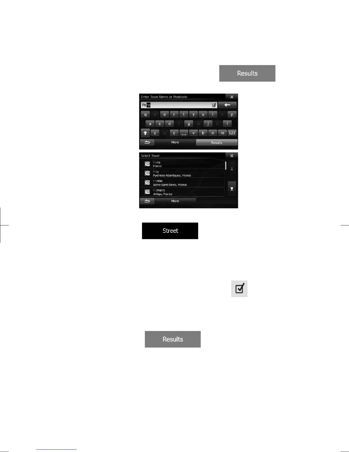 b. Start entering the street name on the keyboard.