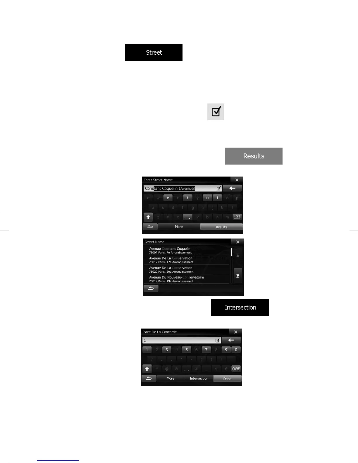 b. Start entering the street name on the keyboard.