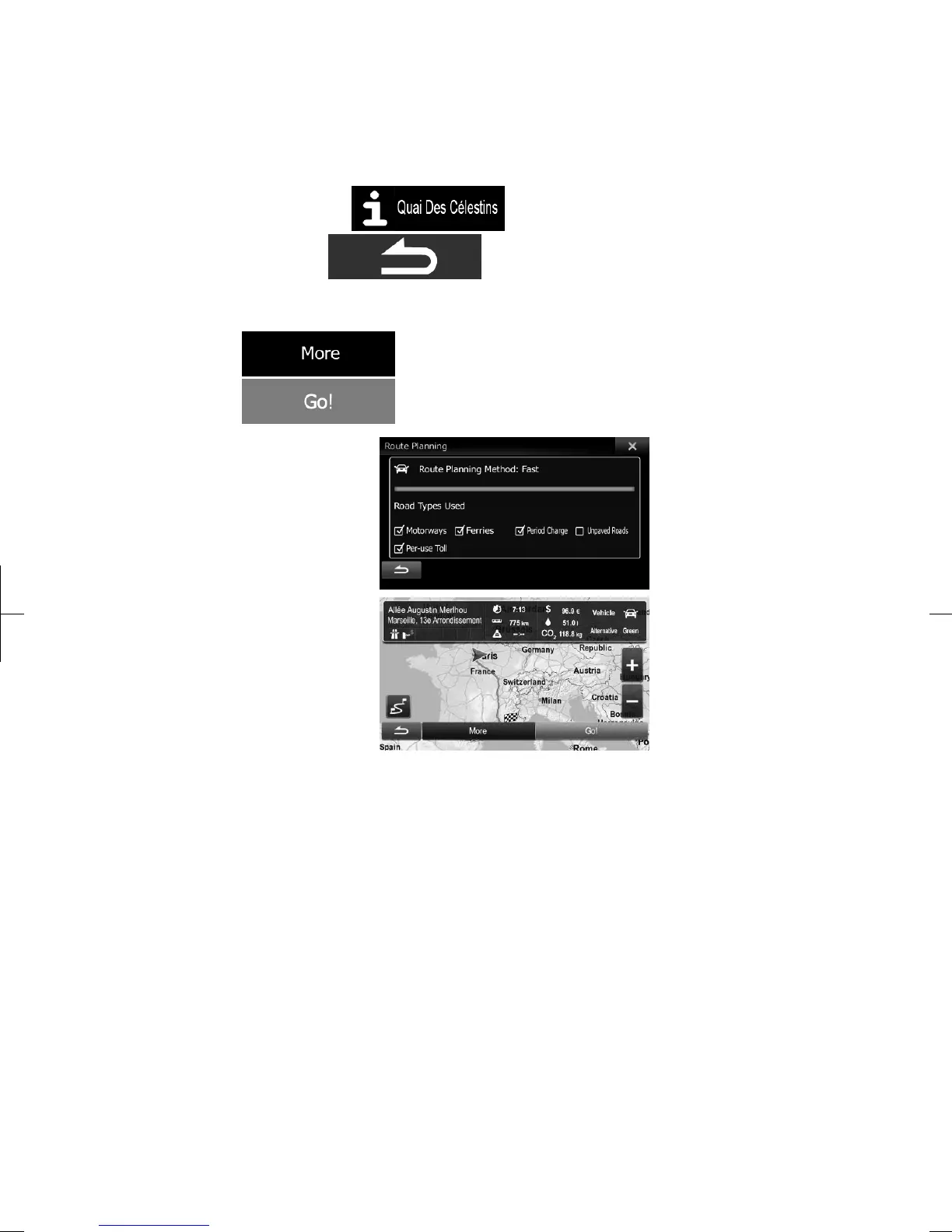 showing the entire route. The route is automatically calculated. Tap