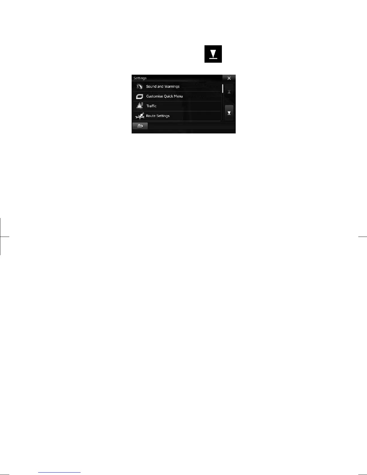 The Settings menu has several options. Tap or scroll with your finger