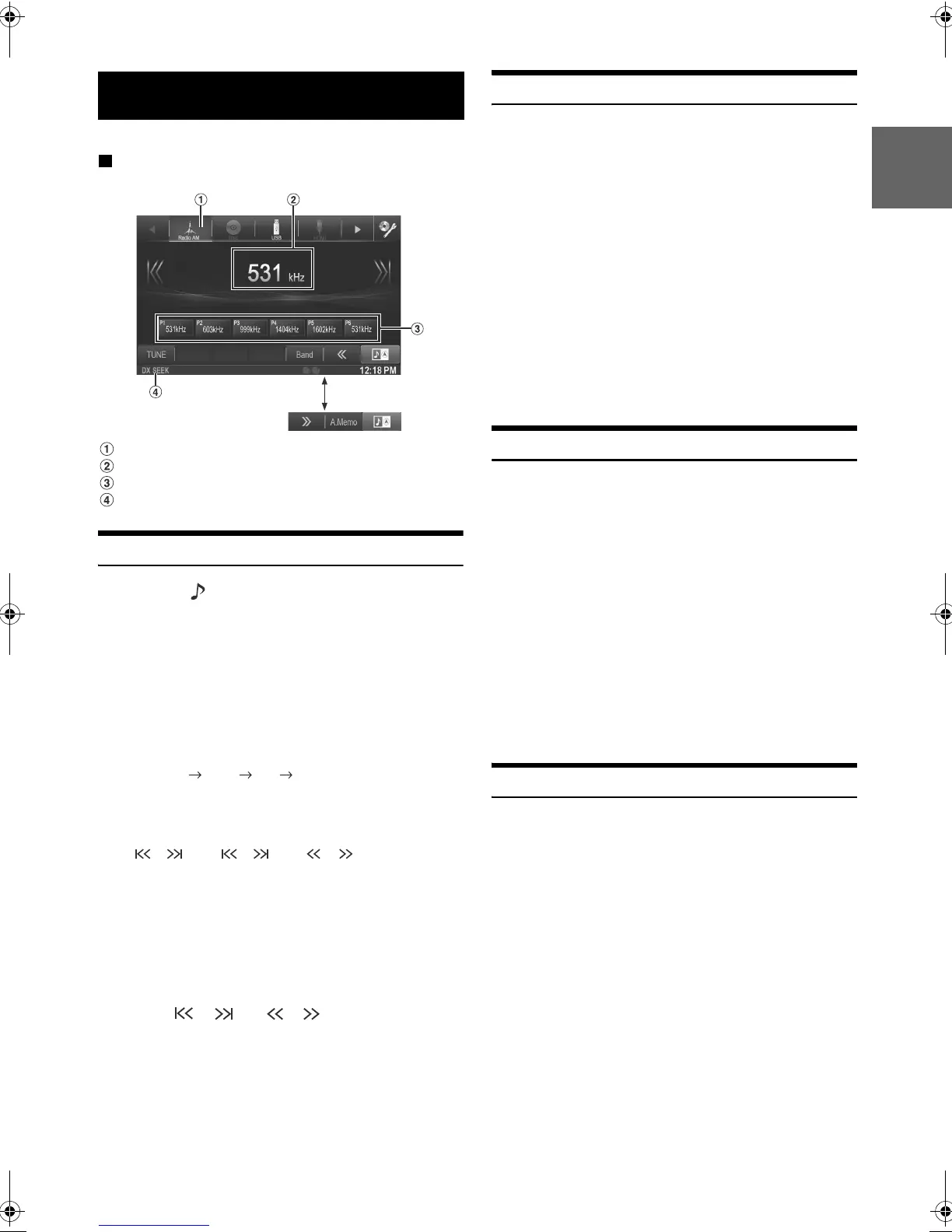 • You can cancel this process by touching [A.Memo] while the tuner is