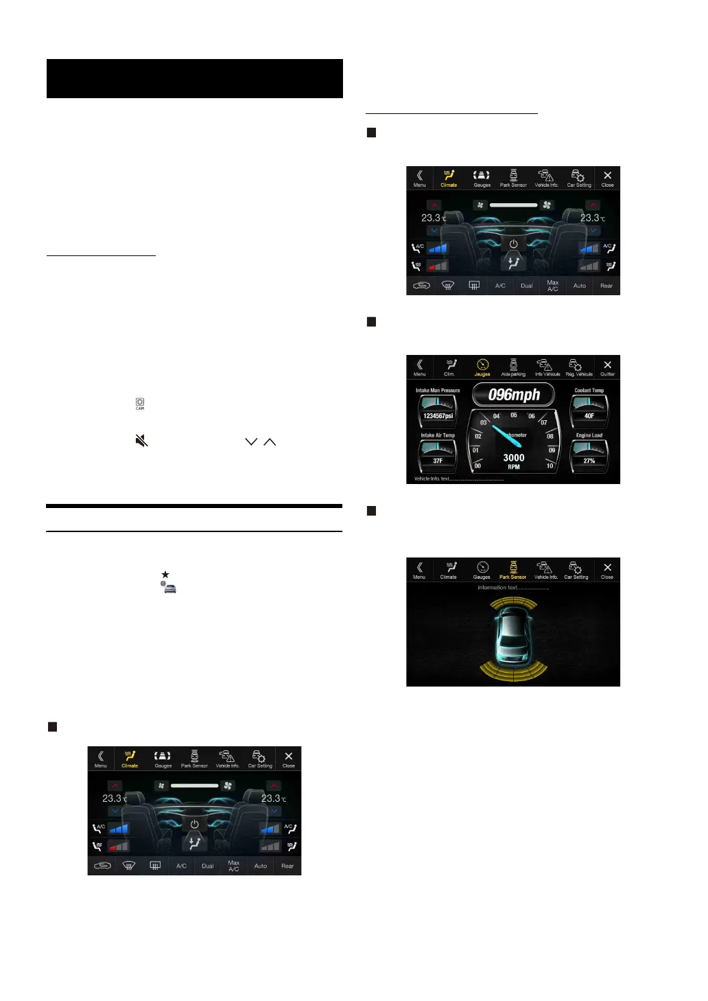 Climate / Gauges / Park Sensor / Vehicle Info. / Car Setting