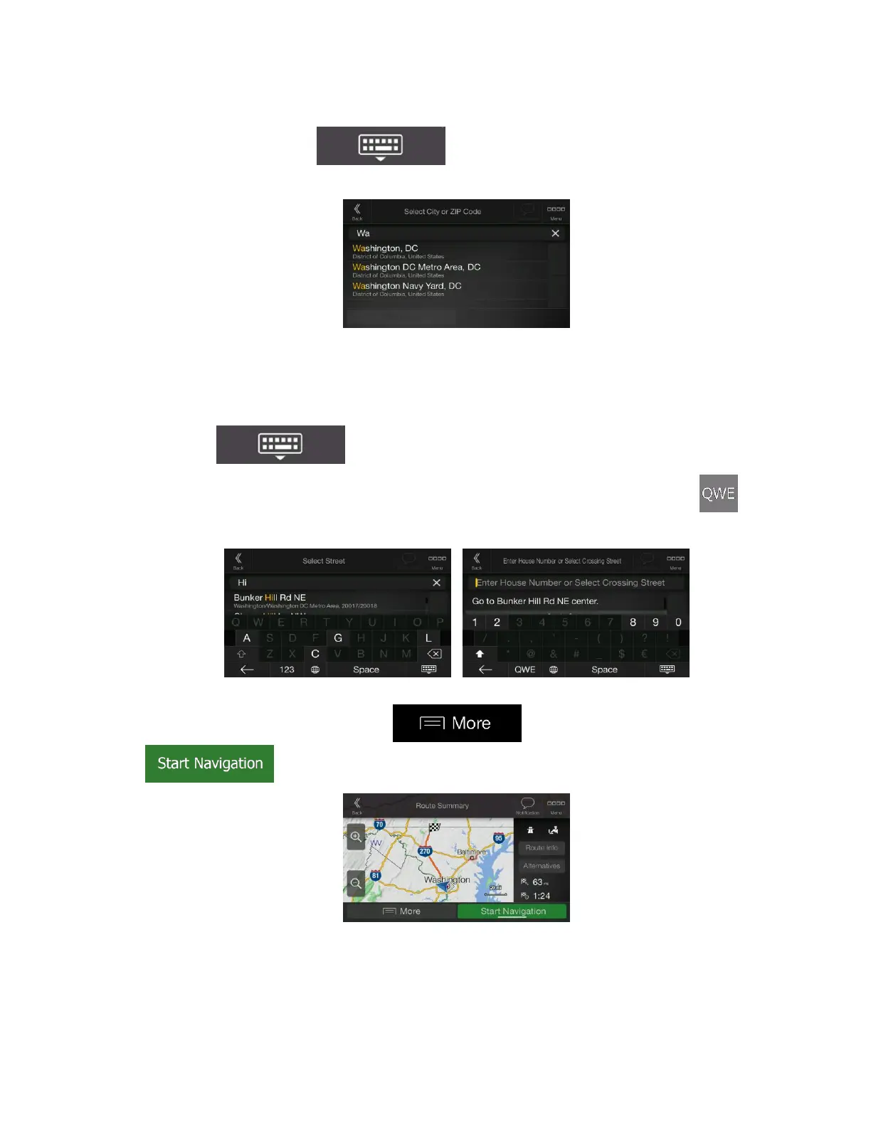 2. Enter the street name and the house number or crossing street by performing the following steps: