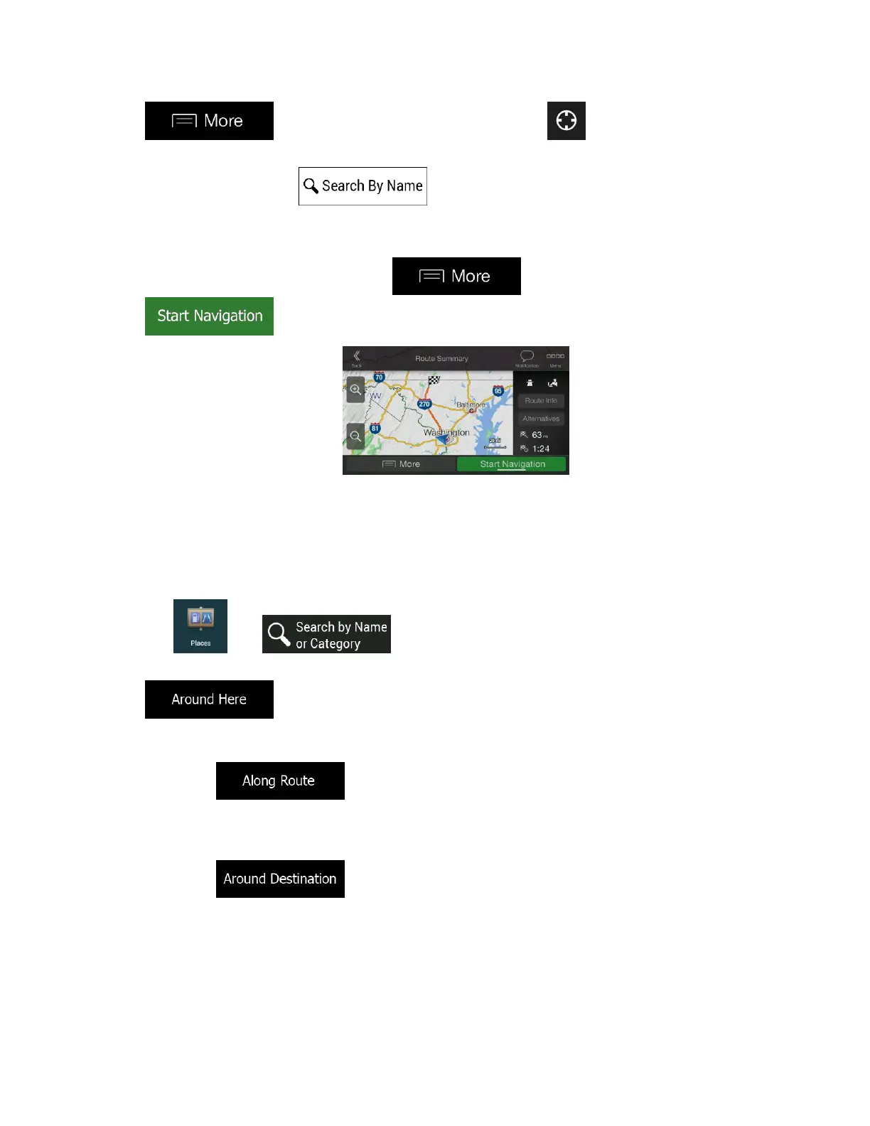 Tap to search for a place around the destination of the planned route.