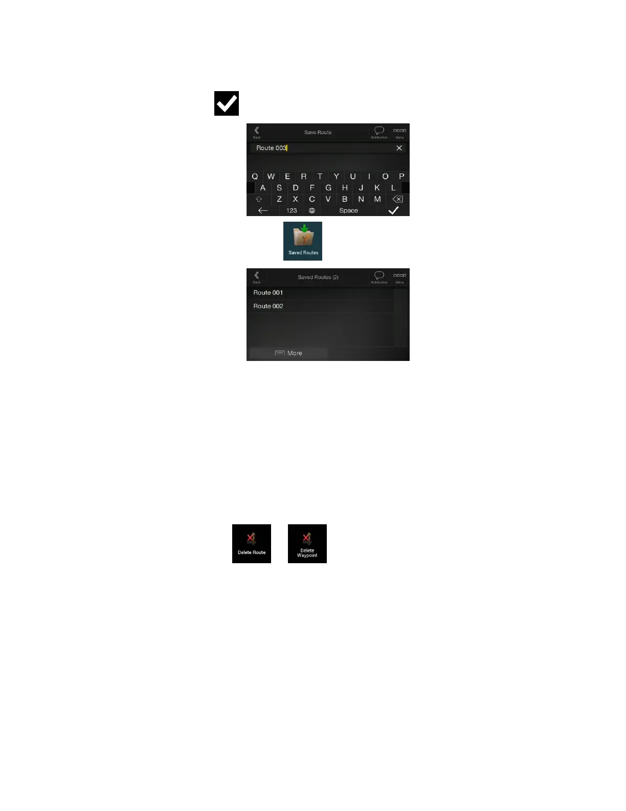 deleted after a confirmation. If you have waypoints, you can choose to delete the whole route, or