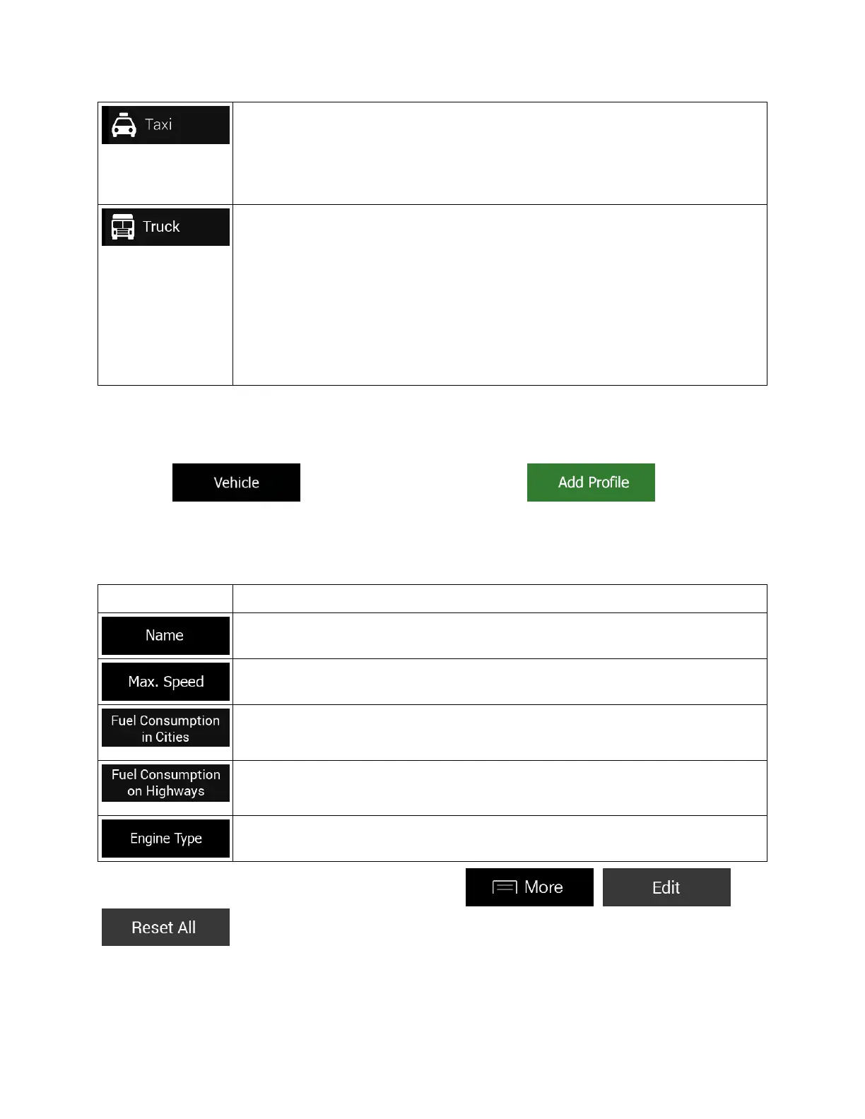 Creating a profile makes it possible to set up vehicle parameters used in route planning. You can have