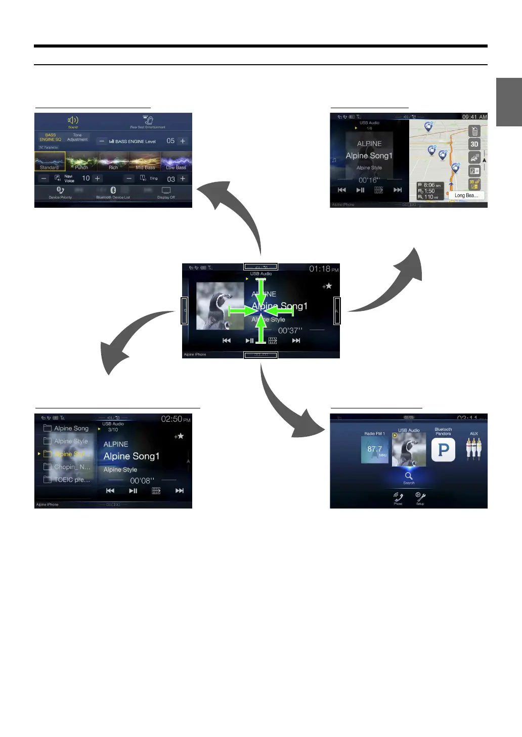 horizontally. For details on how to swipe the screen, see “Touch Screen Operation” (page 17).