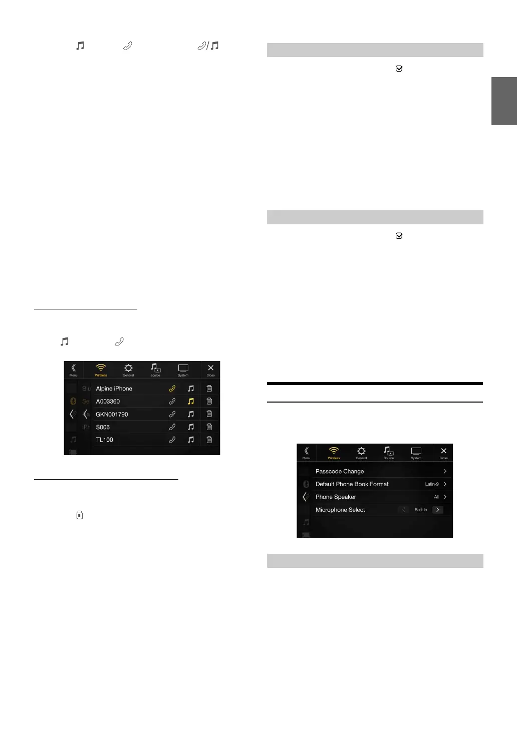 1 To uc h [ ] (Delete) of the Bluetooth compatible device