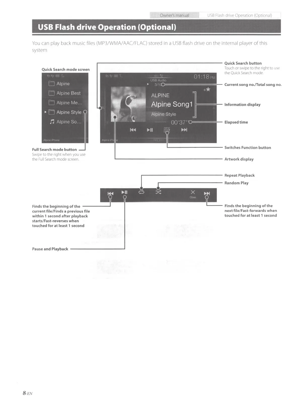 Alpine X108U - USB Flash Drive Operation (Optional)