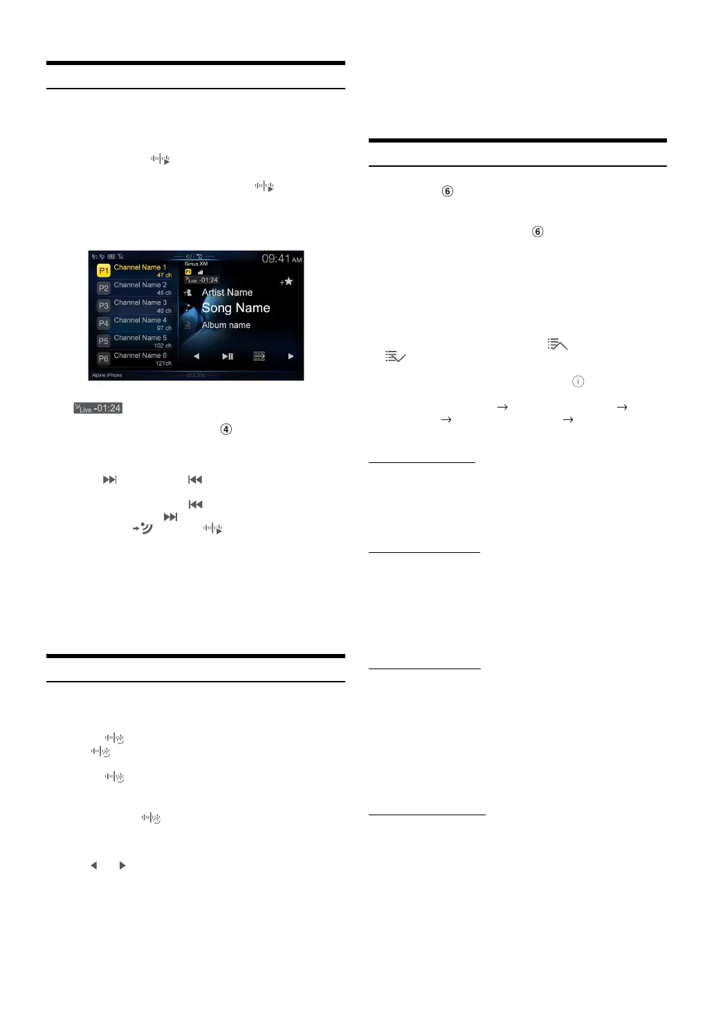 • To switch to the Preset mode screen, see in “SiriusXM main screen