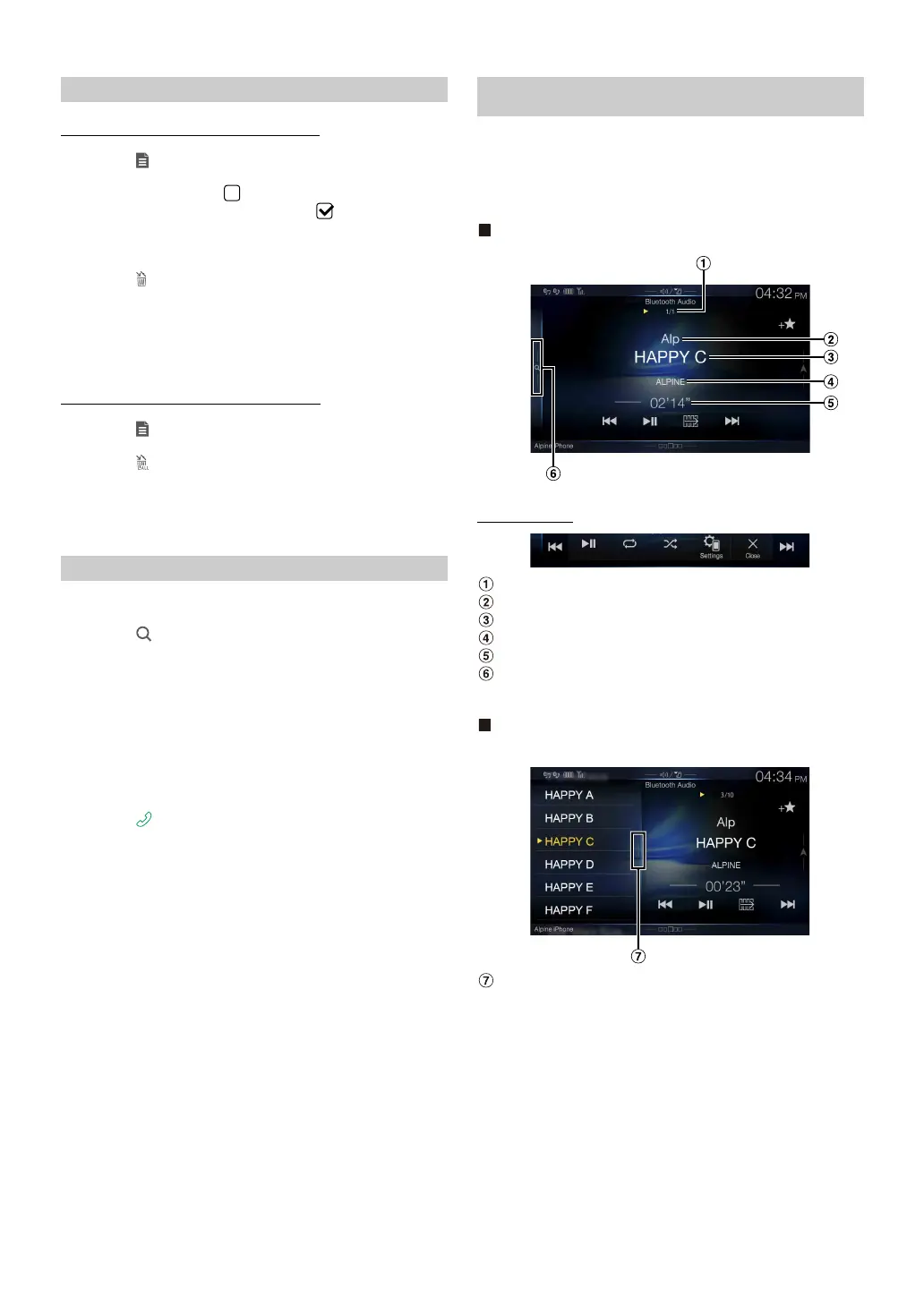 • The displayed onscreen buttons may differ depending on the AVRCP