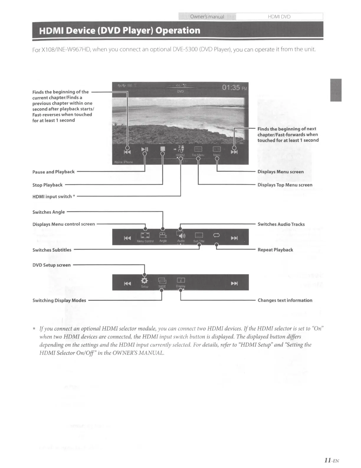 Alpine X110 - HDMI Device (DVD Player) Operation