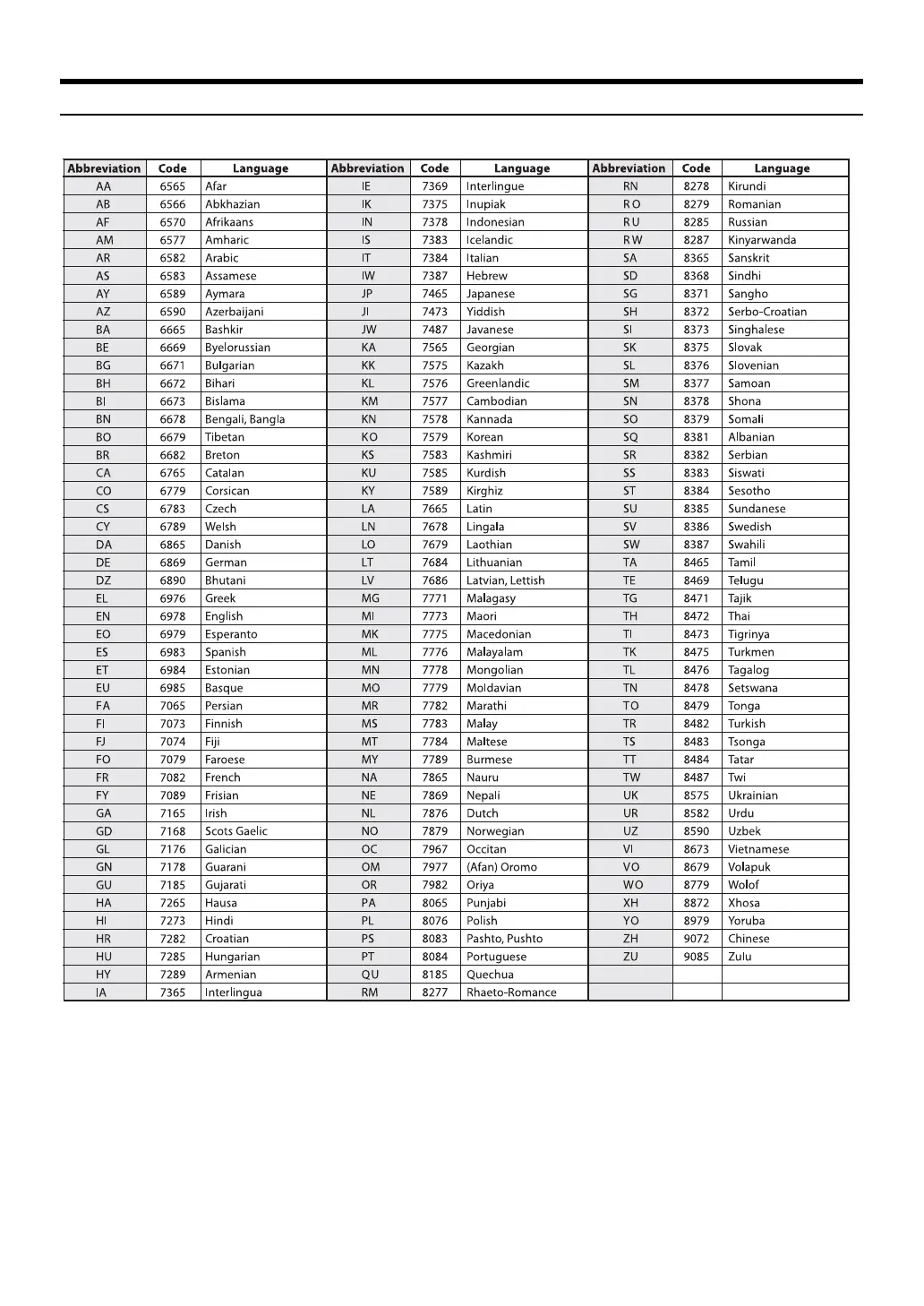 List of Language Codes