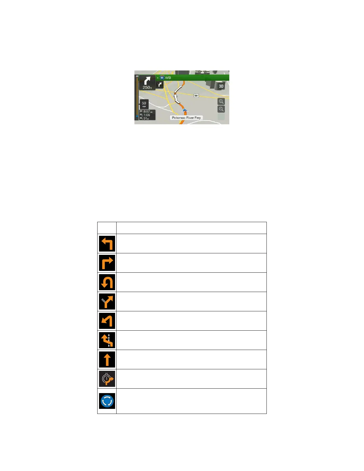 During navigation the next maneuver is displayed in the top left corner. Most of the maneuver icons are