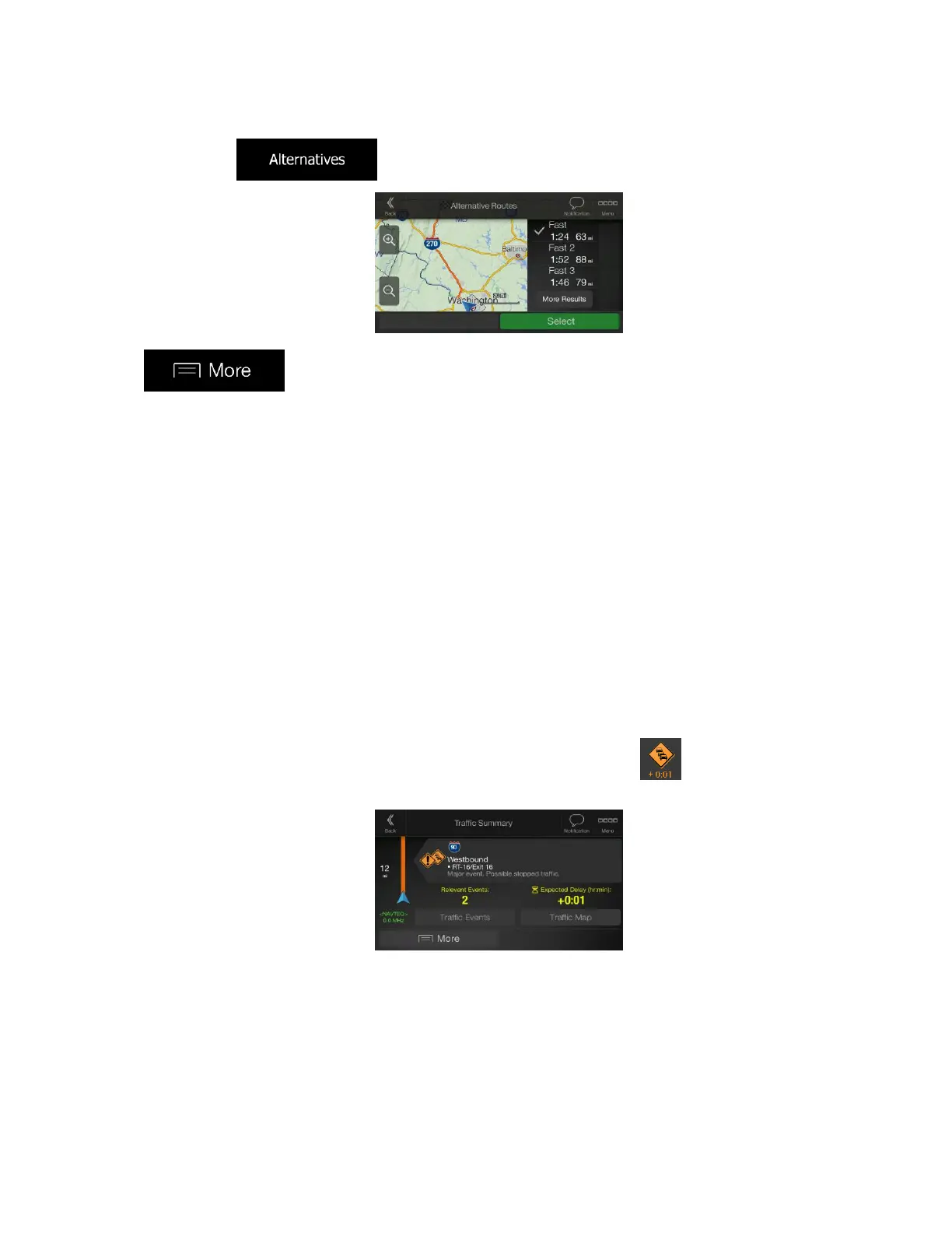 1. On the Navigation view, tap the traffic icon in the corner (for example, ) to open the Traffic