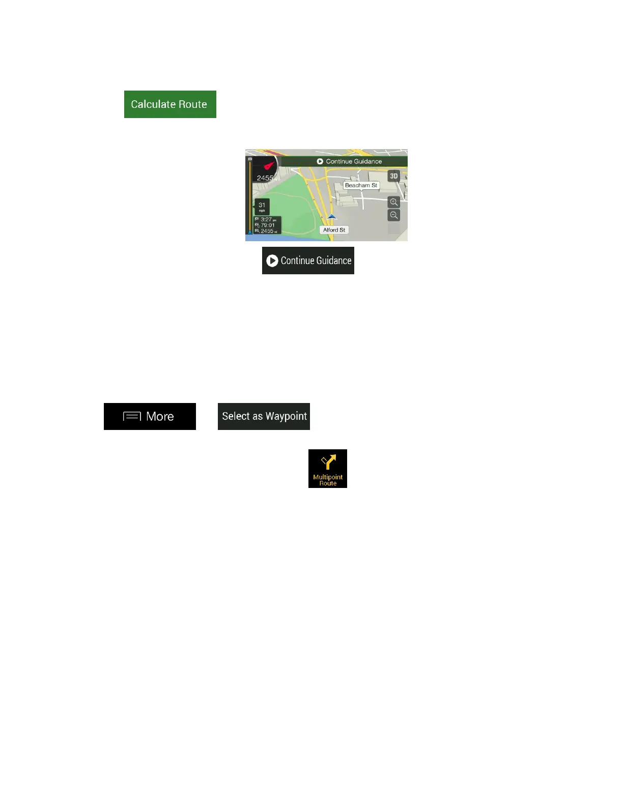 To add a new intermediate destination to the planned route, perform one of the following actions: