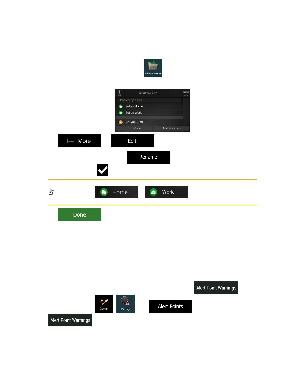Alpine X110 - Editing a Saved Location; Adding an Alert Point