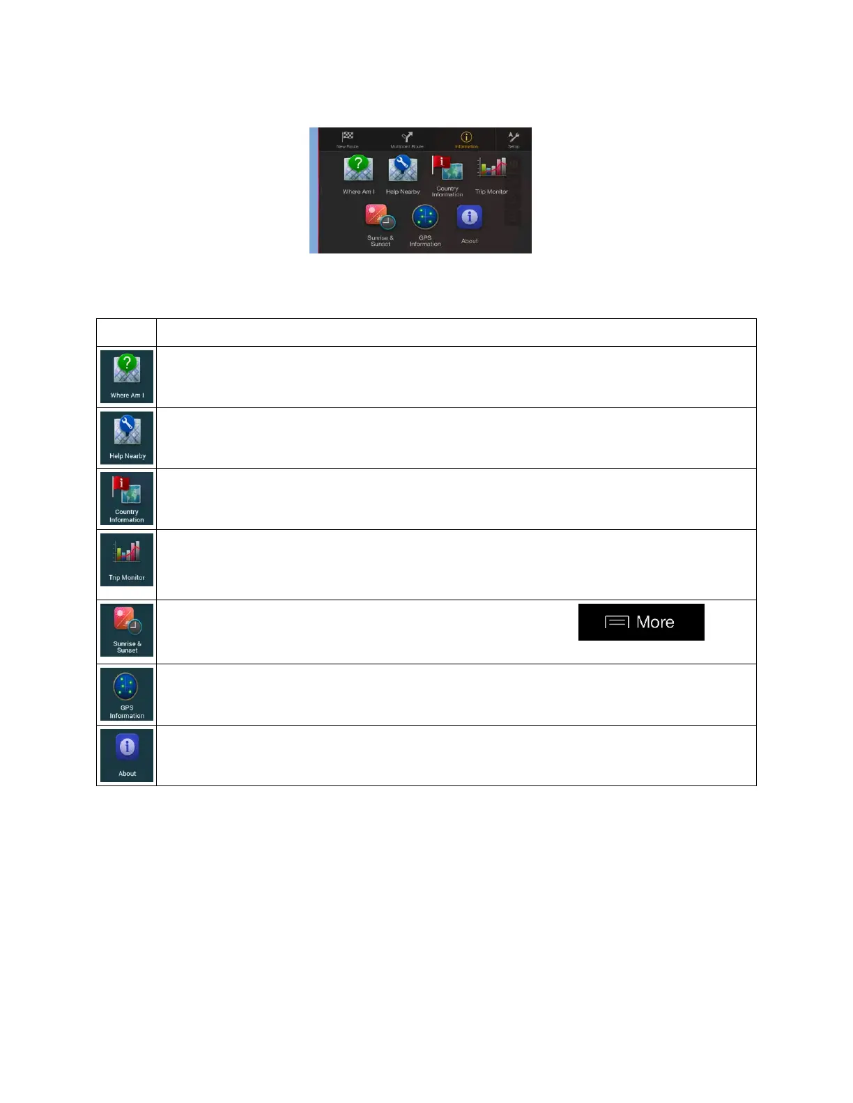 The Information menu provides various additional functions. It can be found in the Navigation menu. You