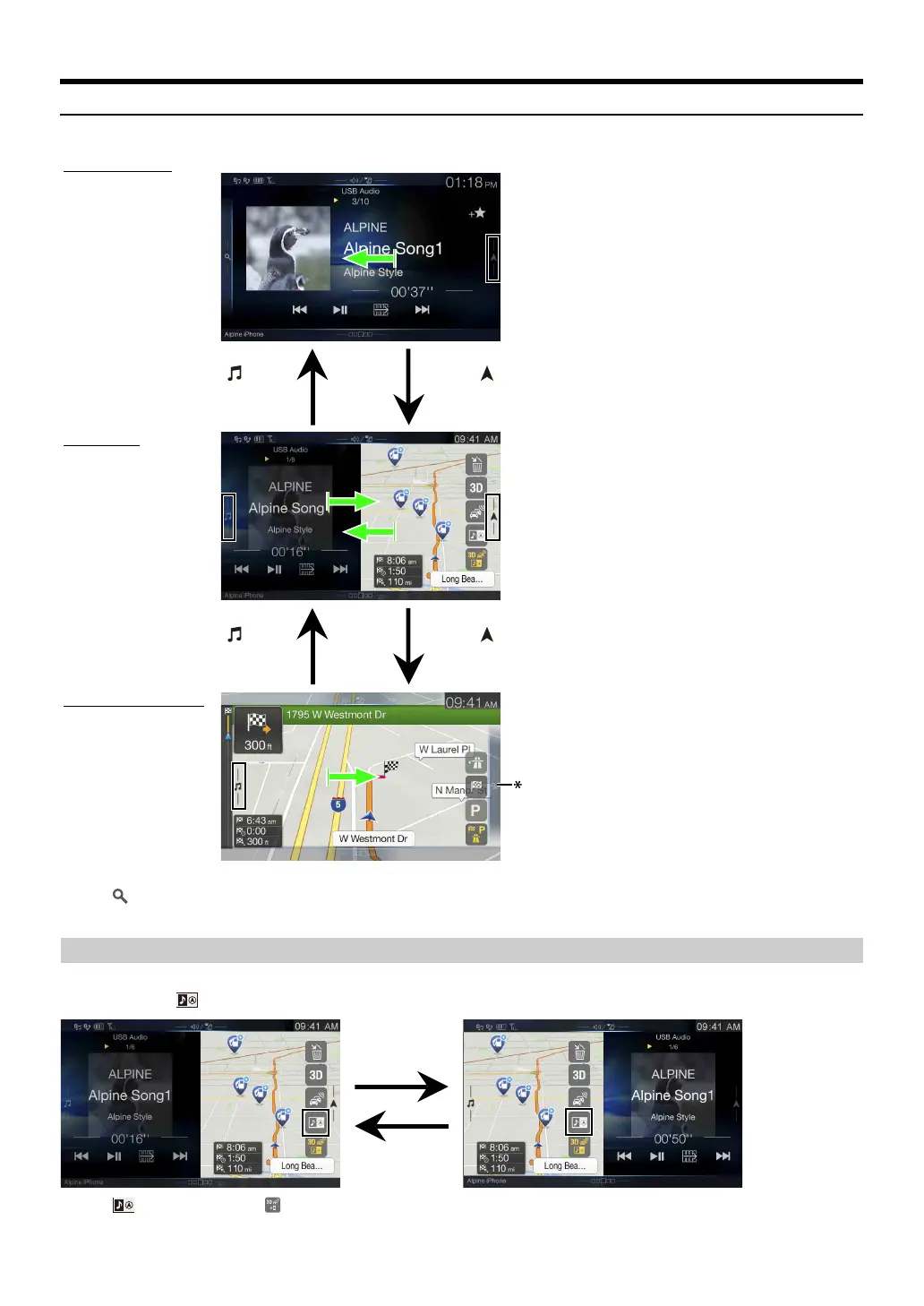 Each time you touch , the positions of Audio/Visual screen and Navigation screen switch.