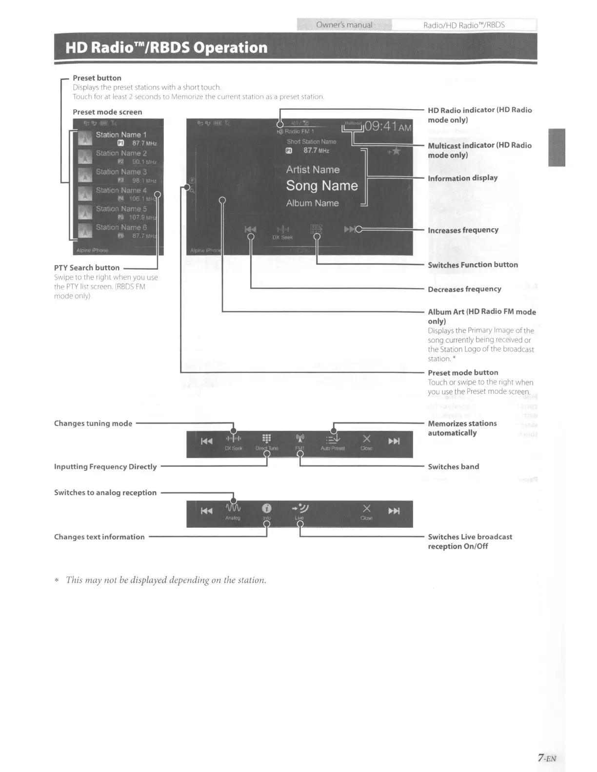 Alpine X110 - HD Radio;RBDS Operation