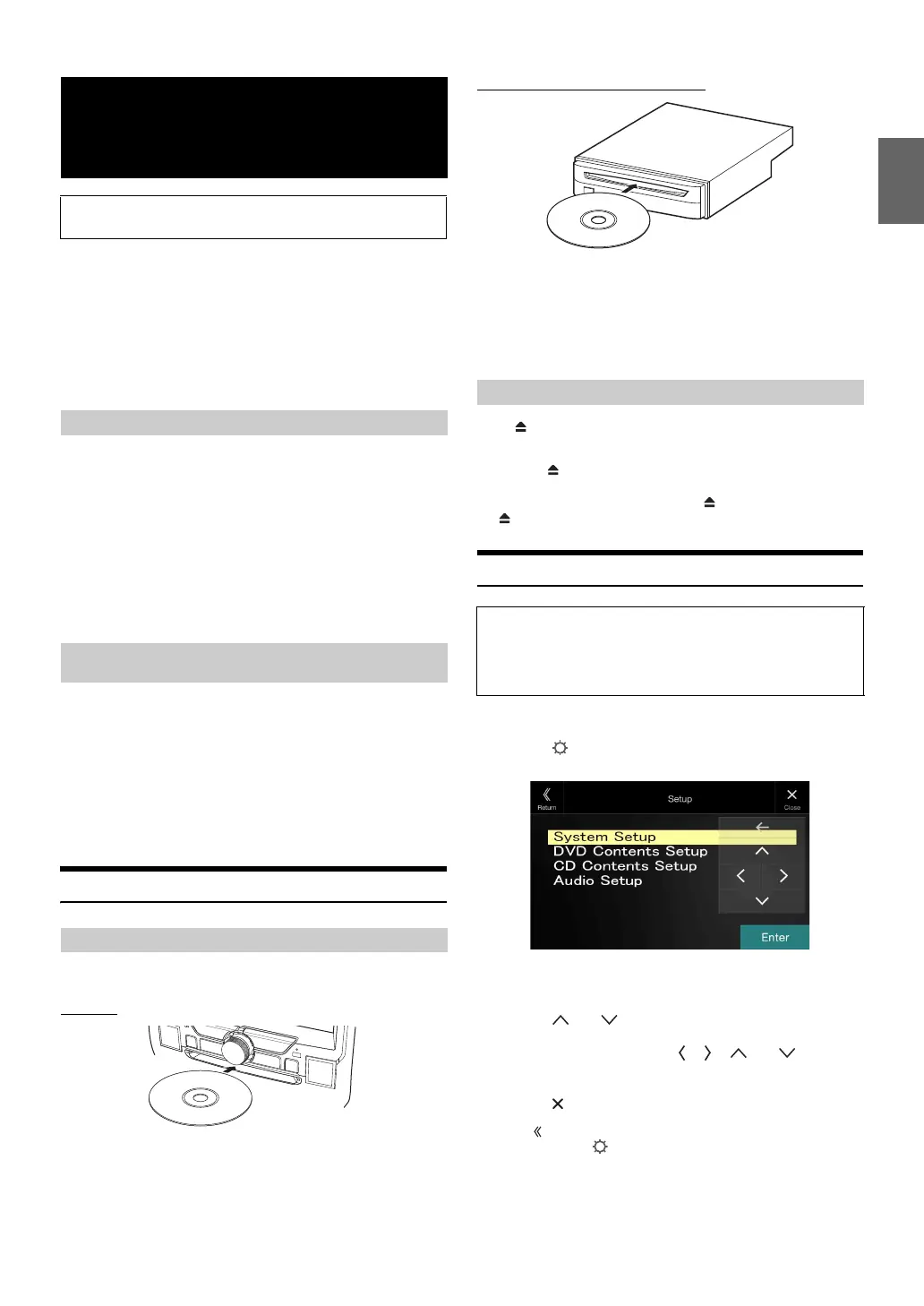 • Before inserting or removing the disc, always turn the ignition key to