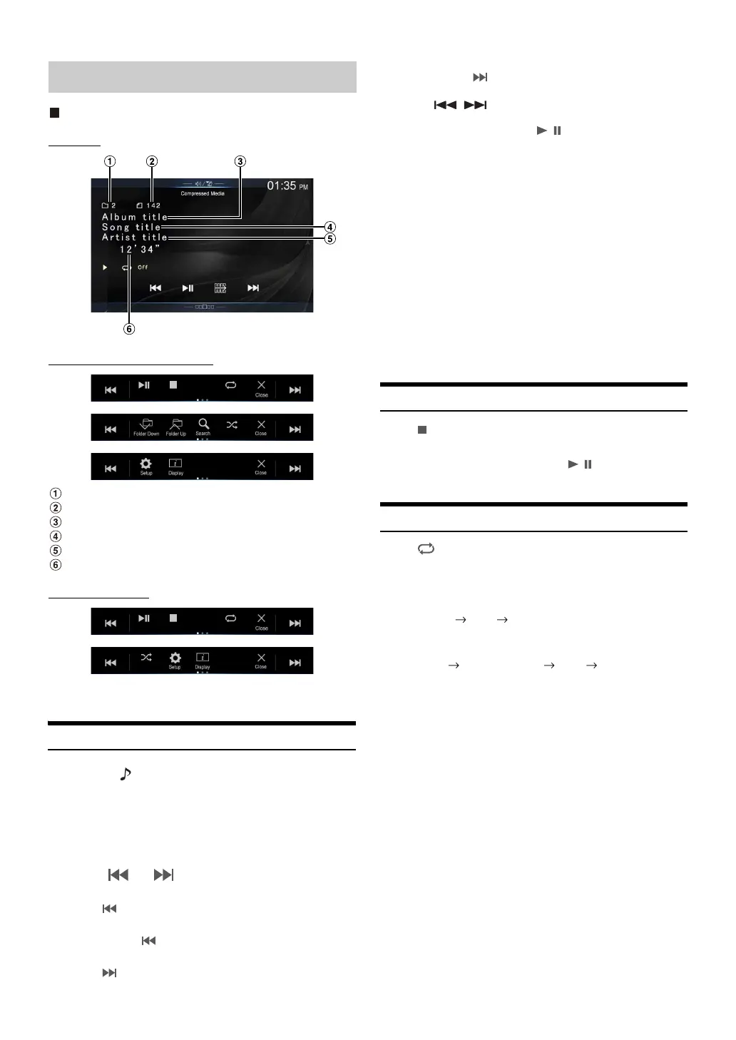 • If an MP3/WMA/AAC/WAV disc with many files and folders is played,