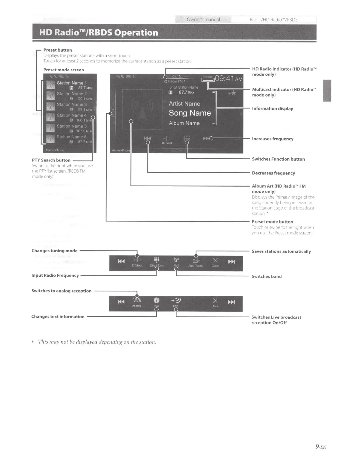 the preset stations with a short touch.