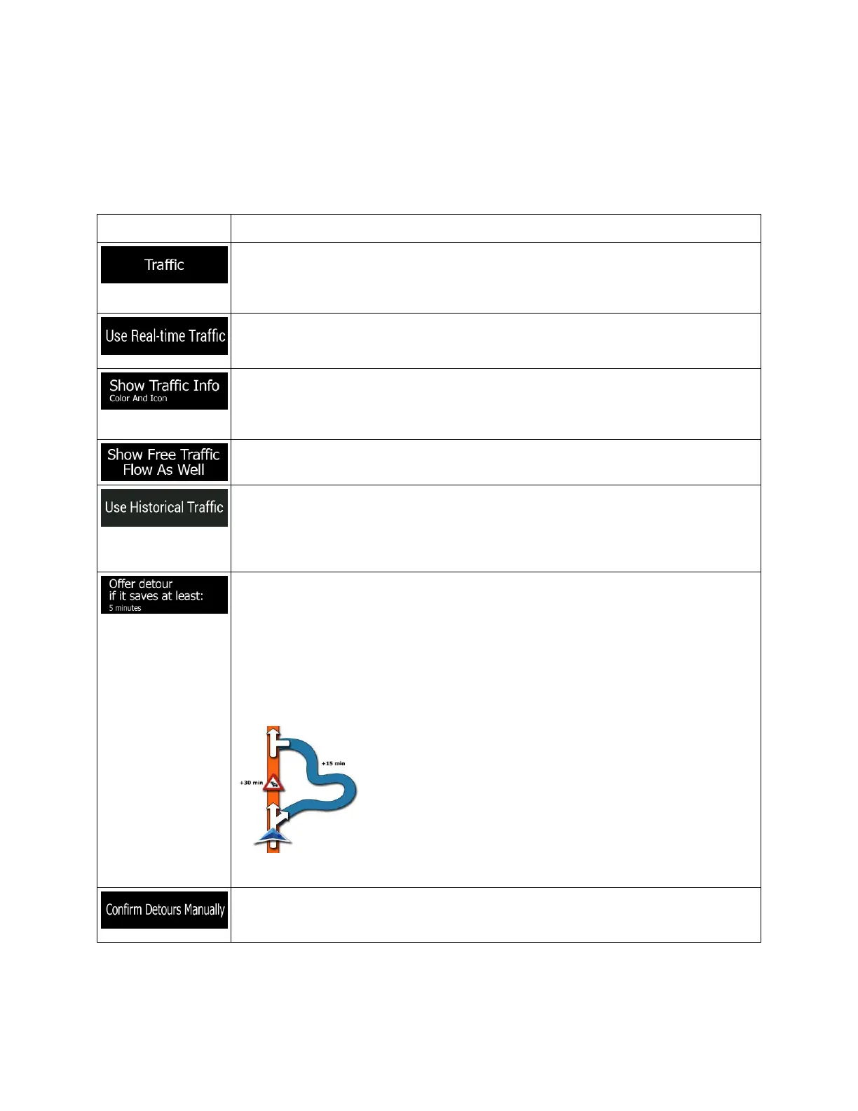 The rest of the buttons below are all related to the Traffic function and are available