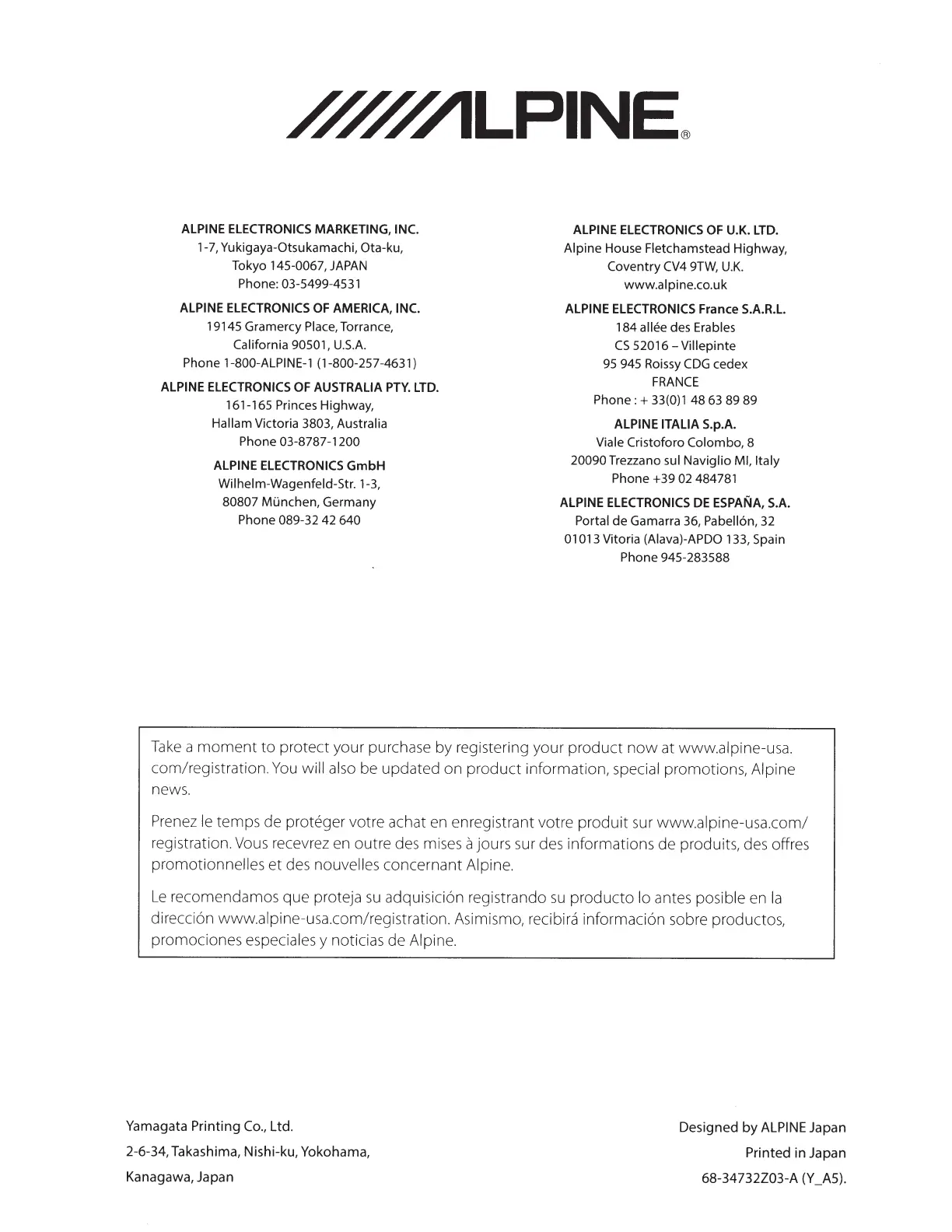 direcci6n www.alpine-usa.com/registration. Asimismo, recibira informacion sobre productos,