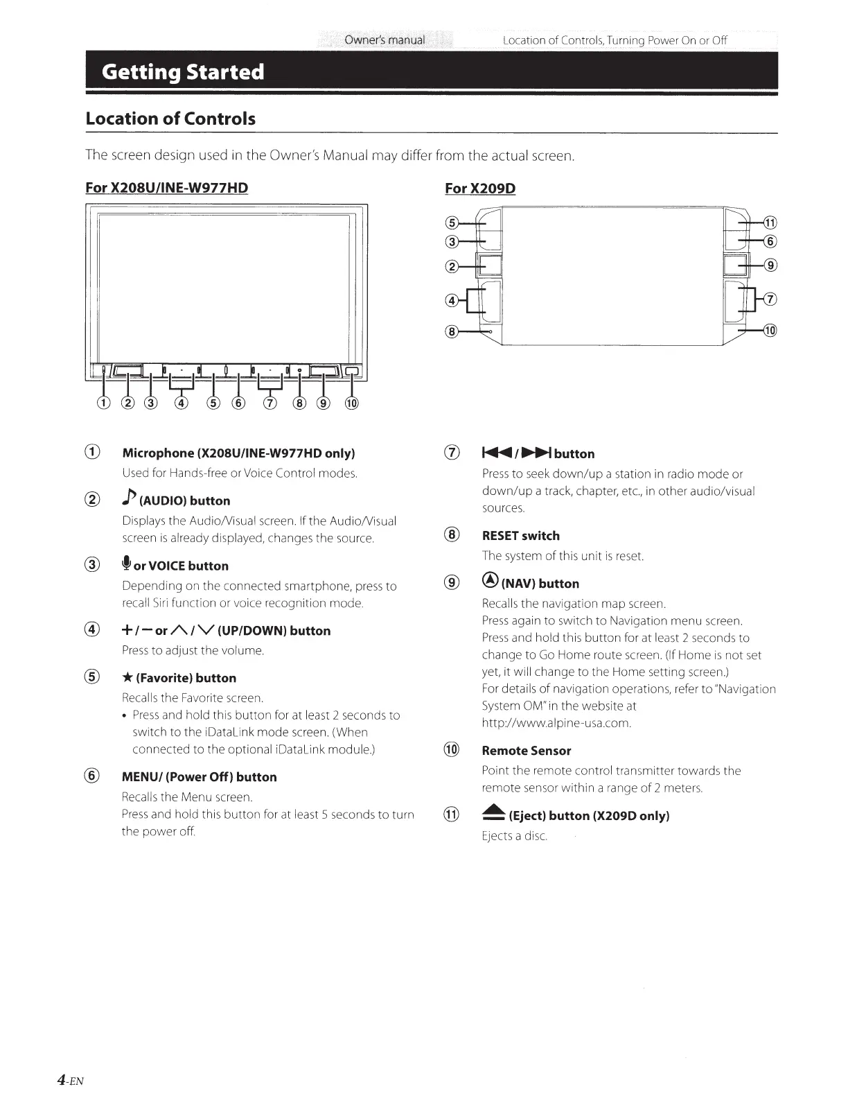 The screen design used in the Owner's