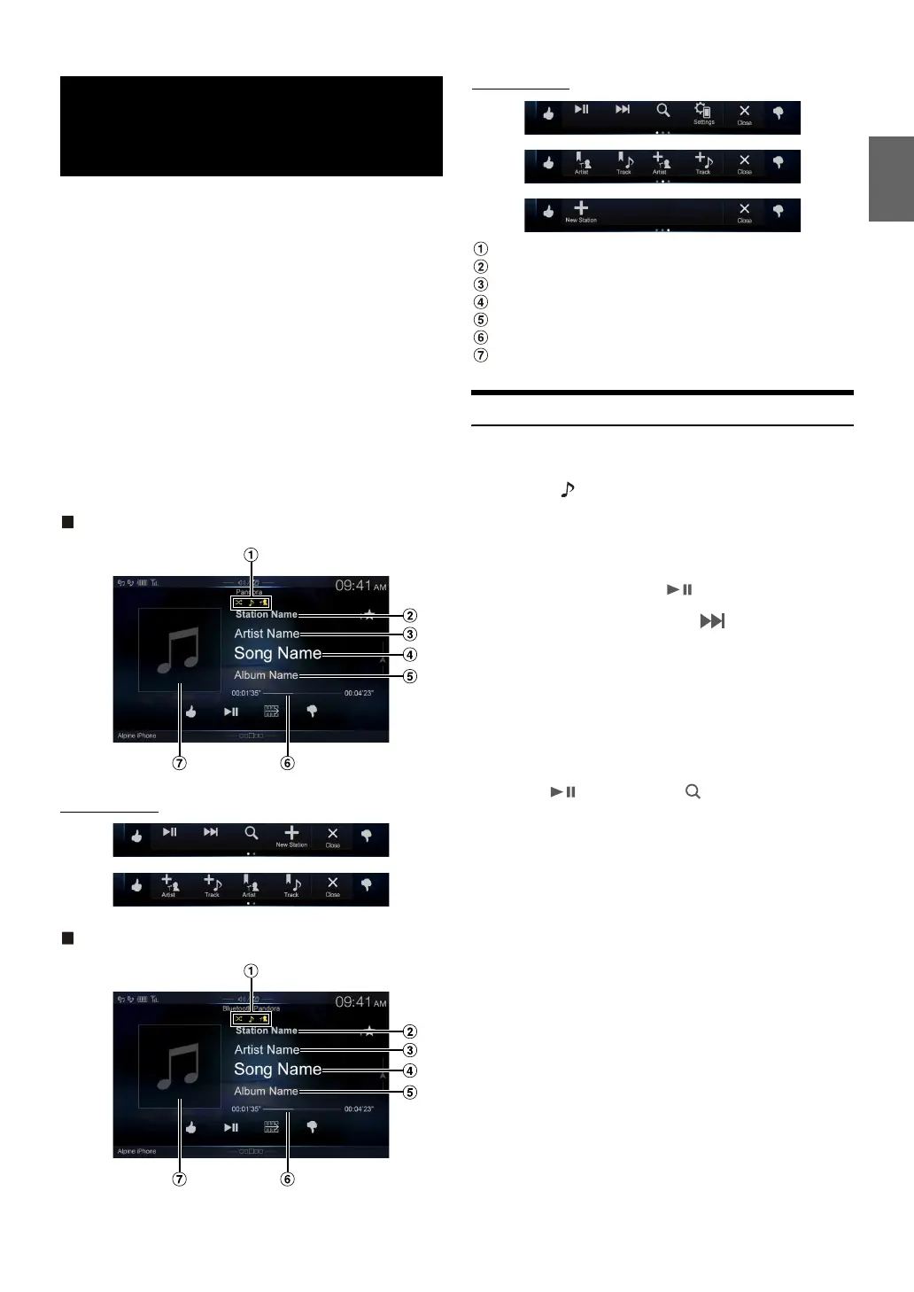 • Before selecting Pandora® source in the Menu screen, turn Apple