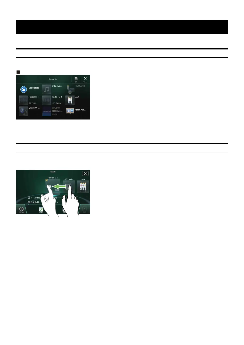 You can change the source icon display by swiping the touch screen horizontally with your finger. For details, see “Touch Screen Operation” (page 17).