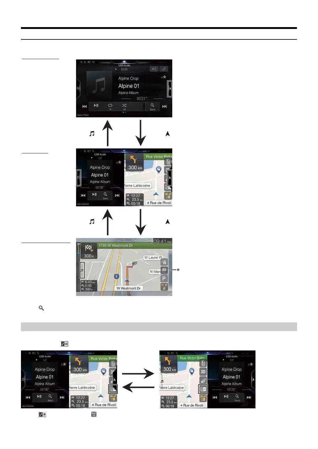 Each time you touch , the positions of Audio/Visual screen and Navigation screen switch.