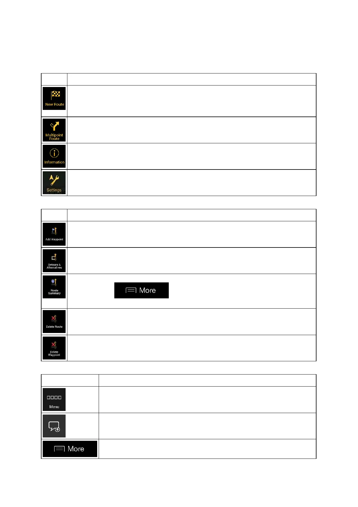 You can see the following menu options when you are navigating without a planned route: