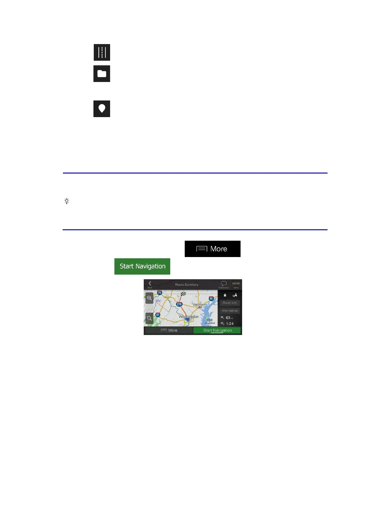 route information and route alternatives. Tap to modify the route