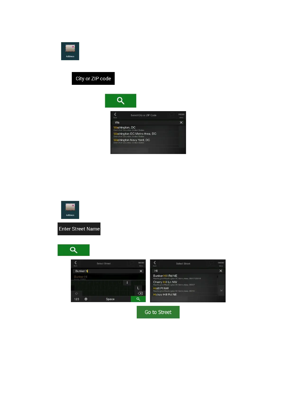 To navigate to the midpoint of a street without entering the house number, perform the following