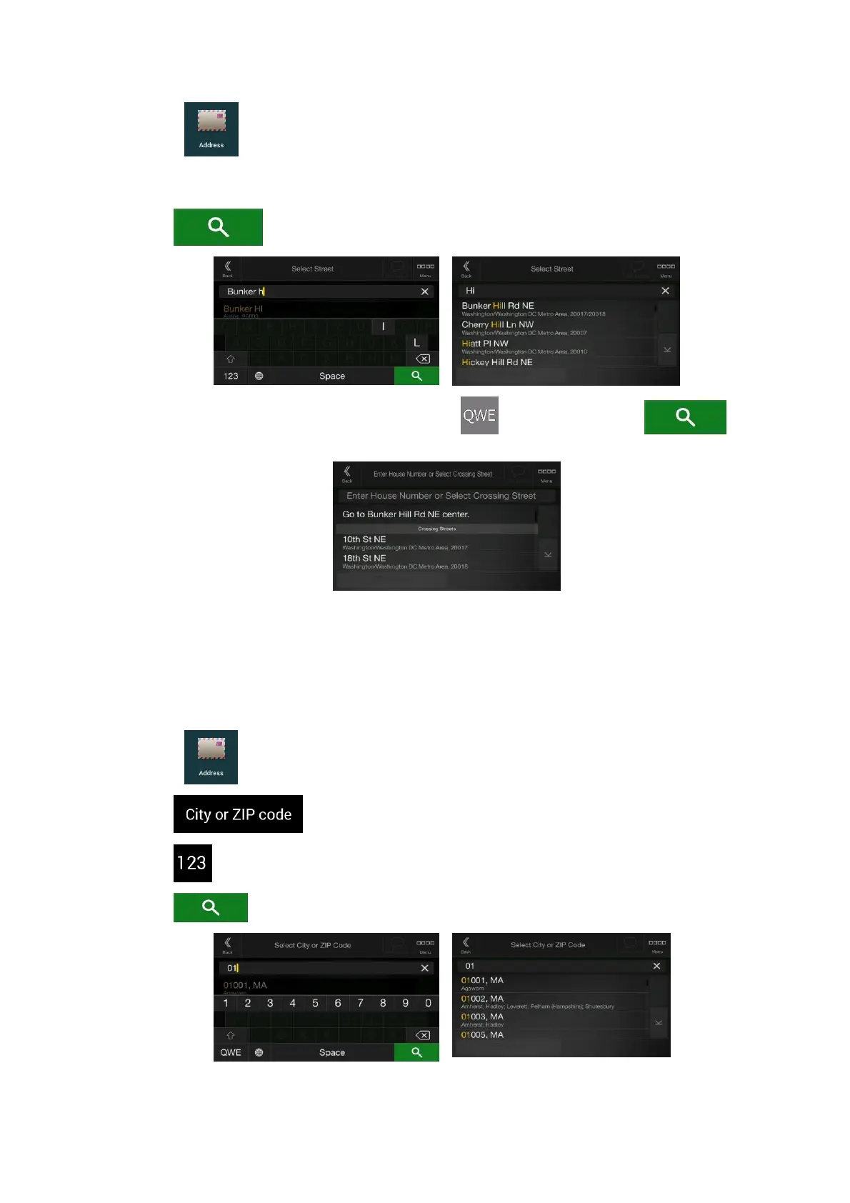 Start entering the street name on the keyboard. The names that match the string appear in a