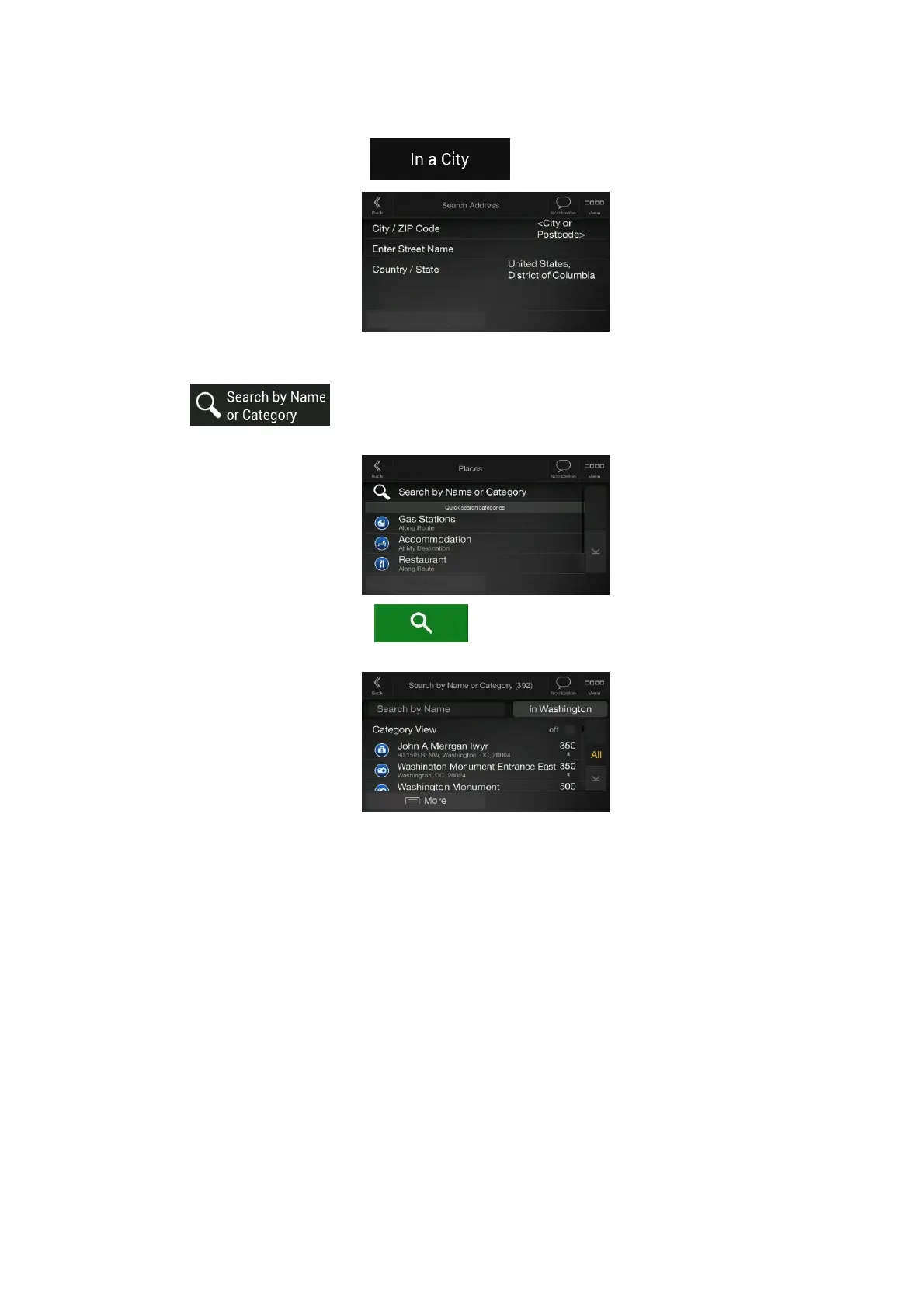 You can search for the name of a Place in all categories by performing the following steps:
