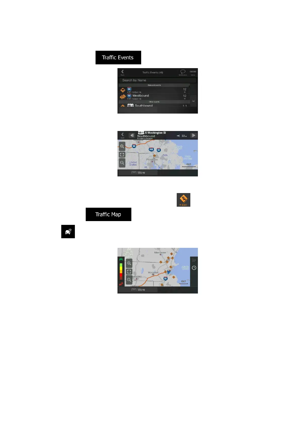 On the Navigation view, tap the traffic icon (for example, ) to open the Traffic summary