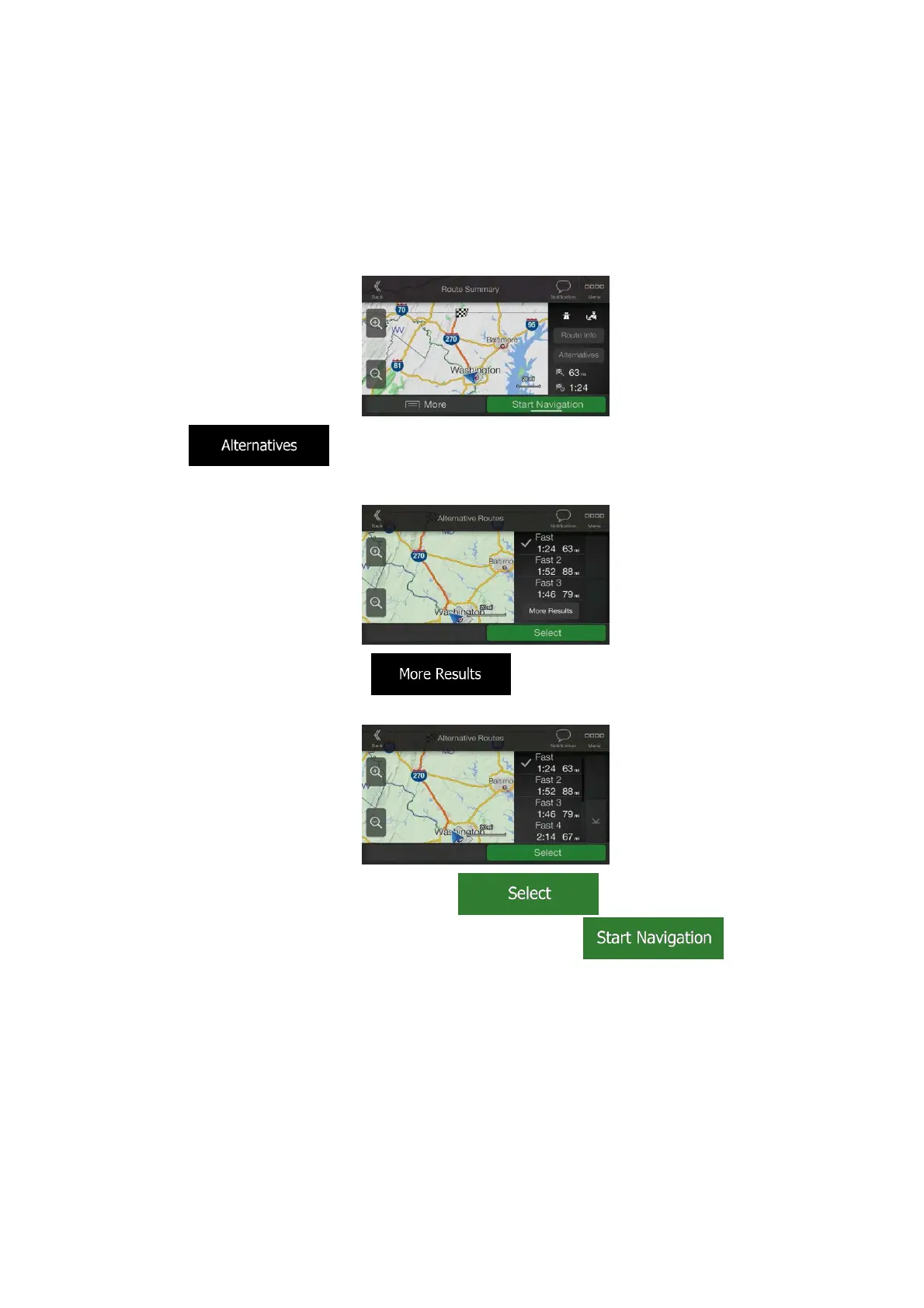 Select a destination as explained earlier, and go to the route confirmation screen.